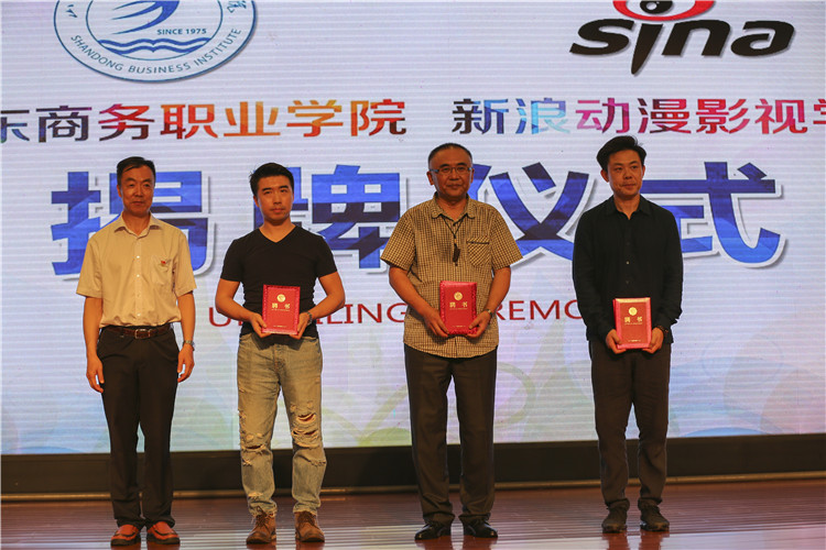 本站讯 6月27日上午10点,我校新浪动漫影视学院揭牌仪式在音乐厅隆重举行。烟台市市委宣传部副部长曲波和新浪动漫CEO、新浪动漫影视学院名誉院长孙玉芊共同为新浪动漫影视学院揭牌。新浪动漫影视学院成立,开创了我校建立混合所有制二级学院的先河,标志着我校办学模式进入更加多元化发展的新阶段。我校副院长陶传蔚主持活动。