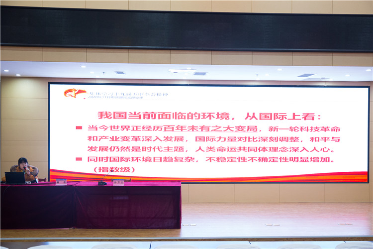 会上,学校思政理论课教学部魏溦博士以《集体学习党的十九届五中全会精神》为题,从党的十九届五中全会概况、《国民经济和社会发展第十四个五年规划和二〇三五年远景目标的建议》要点、“十四五”规划看点、中国会议的世界意义四个方面全面深入的解读了党的十九届五中全会精神。