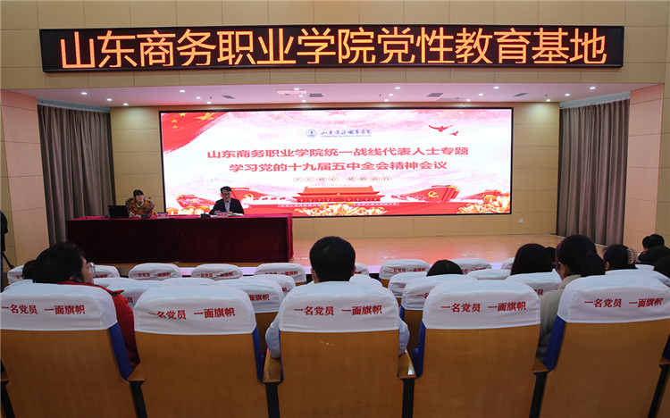 本站讯 12月10日下午,我校统一战线学习党的十九届五中全会精神专题报告会在学校党性教育基地举行。学校各民主党派成员、无党派代表人士和党外知识分子、宣传统战部相关人员参加本次活动。会议由宣传统战部负责人主持。