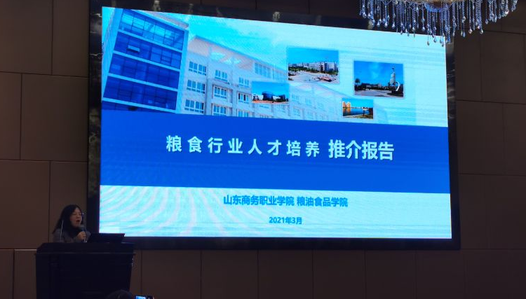 在会议交流环节,邵珍美作为学校代表向大会作了《粮食行业人才培养推介》报告,分享了我校粮油食品学院在专业群建设、人才培养、技能大赛、社会服务等方面取得的成绩。企业代表们对我校粮食类专业的产教融合办学思路颇为关注,纷纷表示赞赏,多家企业已表达校企合作意向,我院将于后期走访调研深化合作内容。