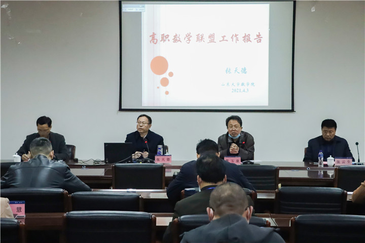 本站讯 4月3日,由山东数学会高等数学专业委员会主办我校承办的山东省第十二届大学生专科数学竞赛筹备会暨2021年高职数学课程建设联盟换届大会在我校举行。山东省高职数学联盟顾问、山东大学崔玉泉教授,山东数学会高等数学专业委员会理事长、山东省高职数学联盟会长、山东大学张天德教授,学校副院长张云生等出席会议,山东省高职院校40余名教师参加了会议,会议由学校基础教学部主任王九福主持。