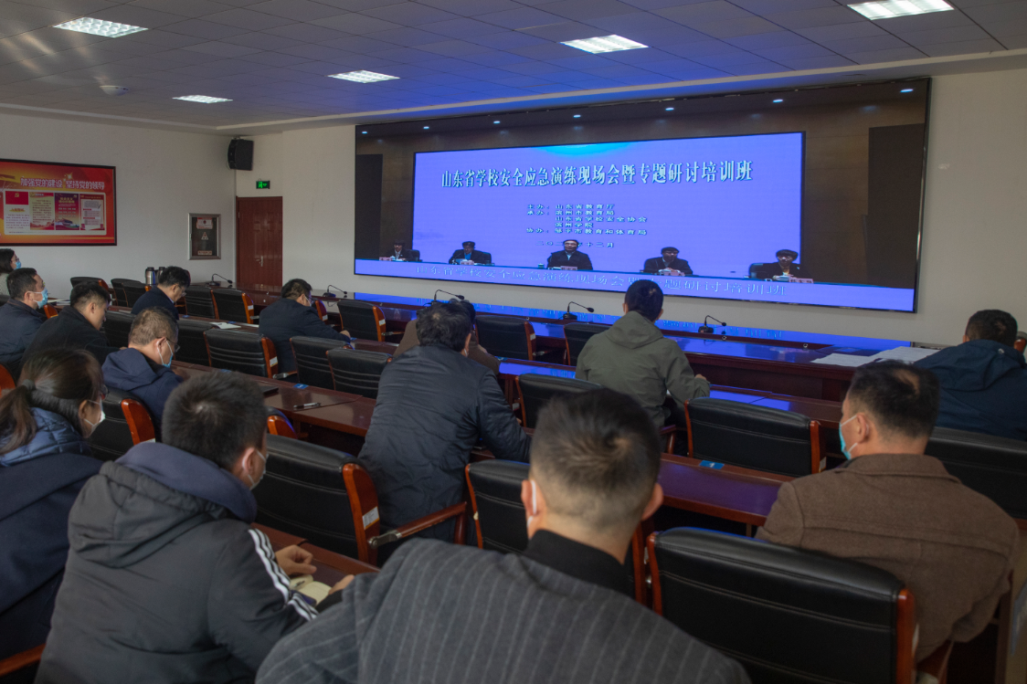 本站讯 12月8日上午,全省学校安全应急演练现场会暨专题研讨培训班在滨州召开。会议传达了全省学校整体安全情况,进一步强调了学校安全工作落实要求。我校在办公楼一楼学习中心设分会场,学校各二级学院书记、分管安全工作副院长、学生科长及全体辅导员、后勤服务处、学生工作处、安全保卫处相关人员参加会议。