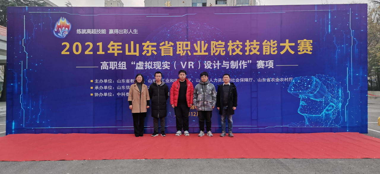 本站讯 12月6日至8日,2021年山东省职业院校技能大赛高职组虚拟现实(VR)设计与制作赛项在潍坊市山东信息职业技术学院举行,来自全省各市区共37支学校代表队参加了此次比赛。我校艺术设计学院学生张钧霆、时昌昊、郑海玉组成的代表队获得此次大赛三等奖。