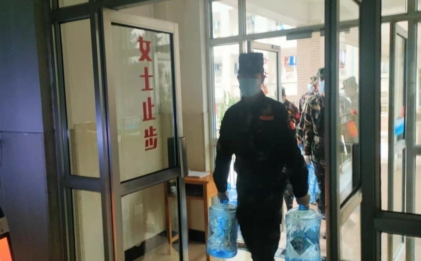 志愿者宿清源表示,作为强军思想连的政治指导员,在本次疫情防控工作中,自己主要负责早晨宿舍饮用桶装水的搬运。为保证师生可以及时饮用干净水源,大家每天早上七点会进行桶装水的搬运工作,一天搬运300余桶,虽然累点,但是每个人都是干劲十足,有一种和学校并肩战斗的强烈自豪感和荣誉感。志愿服务让自己意识到,个体之于世界是如此的渺小,只有凝聚合力,才能共克时艰。