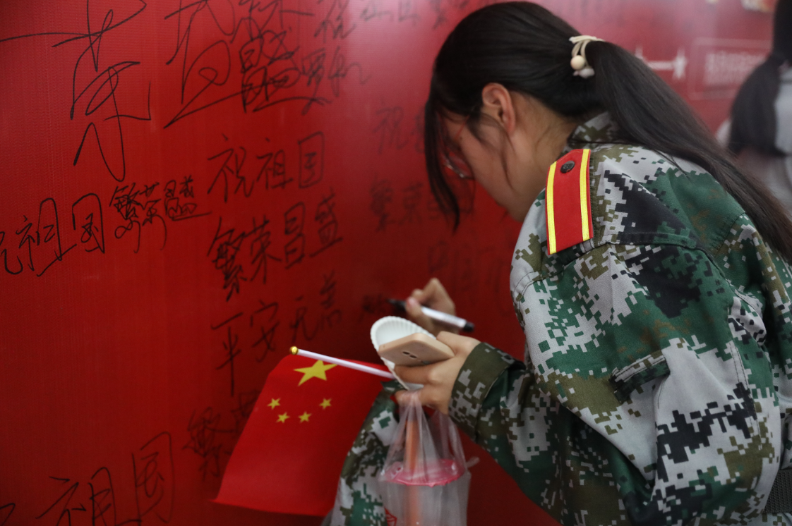 随后,各食堂的庆祝活动陆续开展,第二餐厅一楼食堂还设置了一面表白墙,同学们纷纷写下自己的美好祝愿,有一种骄傲叫“我是中国人”,有一种表白叫“我爱你中国”。