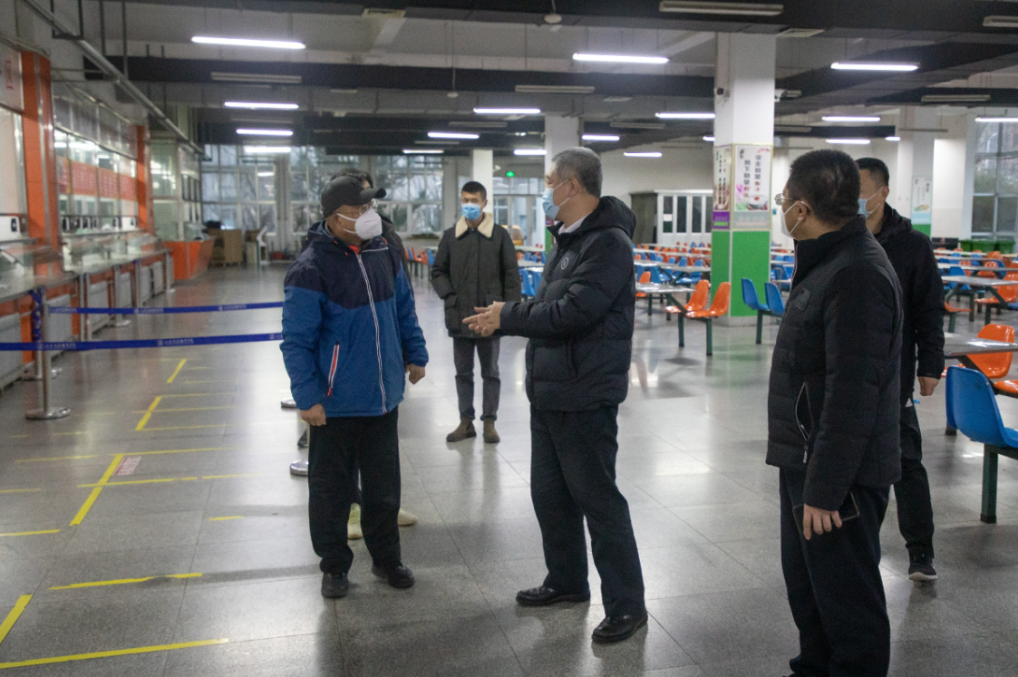 本站讯 12月15日下午,烟台市高新区管委会副主任荆永杰一行到我校调研食堂食品安全工作,学校副校长陶传蔚陪同调研,安全保卫处、后勤服务处及饮食服务中心等部门负责同志参加活动。