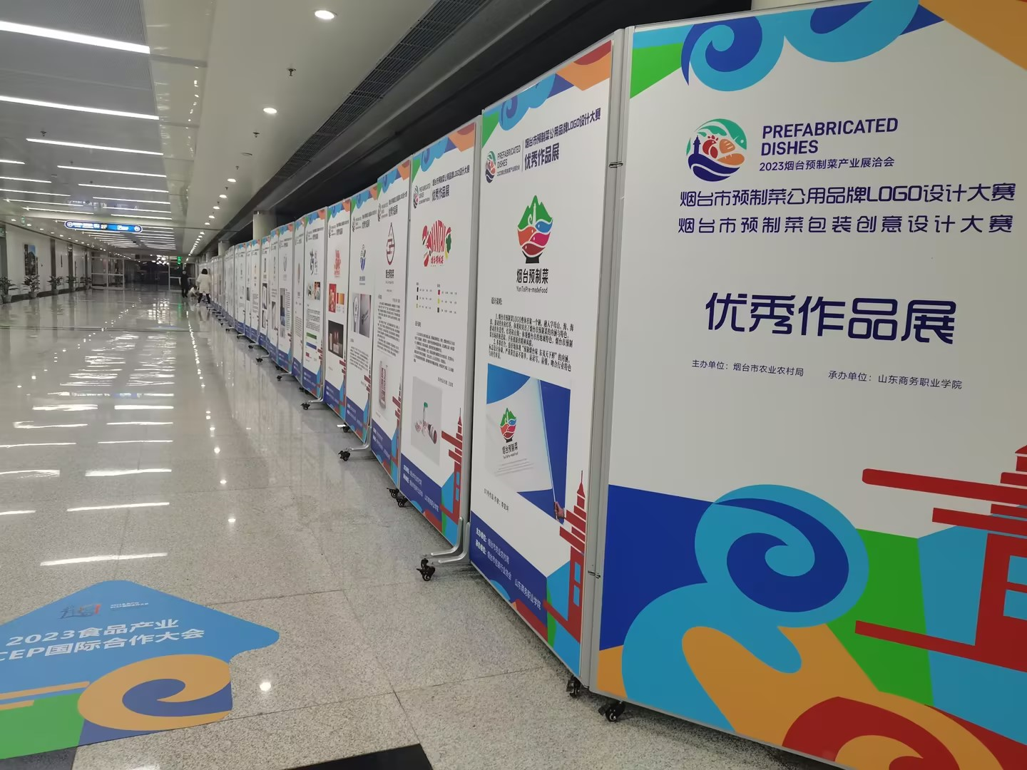 预制菜产业上游连着乡村振兴,下游连着居民消费,已成为拉动农副业、食品产业和餐饮业转型升级的重要抓手。为进一步服务烟台市预制菜产业高质量发展,我校积极承办了“烟台市预制菜公用品牌LOGO设计和包装创意设计大赛”。大赛于5月8日正式启动,面向全国设计达人发出参赛邀请,截止5月26日共收到808幅参赛作品,其中LOGO设计大赛作品401幅,包装创意设计大赛作品407幅。本次在2023RCEP区域食品产业博览会上共展出75幅优秀作品,原国家粮食储备局局长、党组书记高铁生,烟台市人民政府副市长梁勇等各级领导莅临展区参观指导。