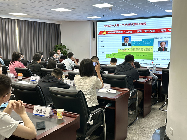 聚焦服务社会,做好宣传阐释。马克思主义学院发挥学科优势,成立主题教育宣讲团,为全校师生讲授习近平新时代中国特色社会主义思想,为主题教育营造浓厚氛围。学院院长姜强深入中国建设银行山东分行,开展党的二十大精神宣讲,用通俗易懂的语言对党的二十大报告进行了解读,采用图片、互动交流等方式,把党的二十大精神讲深、讲透、讲活,鼓励青年员工坚定信念,为实现社会主义现代化国家贡献自己的青春力量。学院教授陆文以“新时代新征程中国共产党的使命任务”为主题,向中国有色工业人才中心党总支党员详细解读了中国式现代化,进一步强化理论学习,引导党员干部更好的以党的创新理论指导实践,推动工作。接下来,马克思主义学院将继续面对校内外及全体师生开展系列宣讲,深入推进学习贯彻习近平新时代中国特色社会主义思想主题教育,确保主题教育筑忠魂、见实效。(通讯员、撰稿:杨宁 审核:姜强 梁倩 值班审核:成雪)
