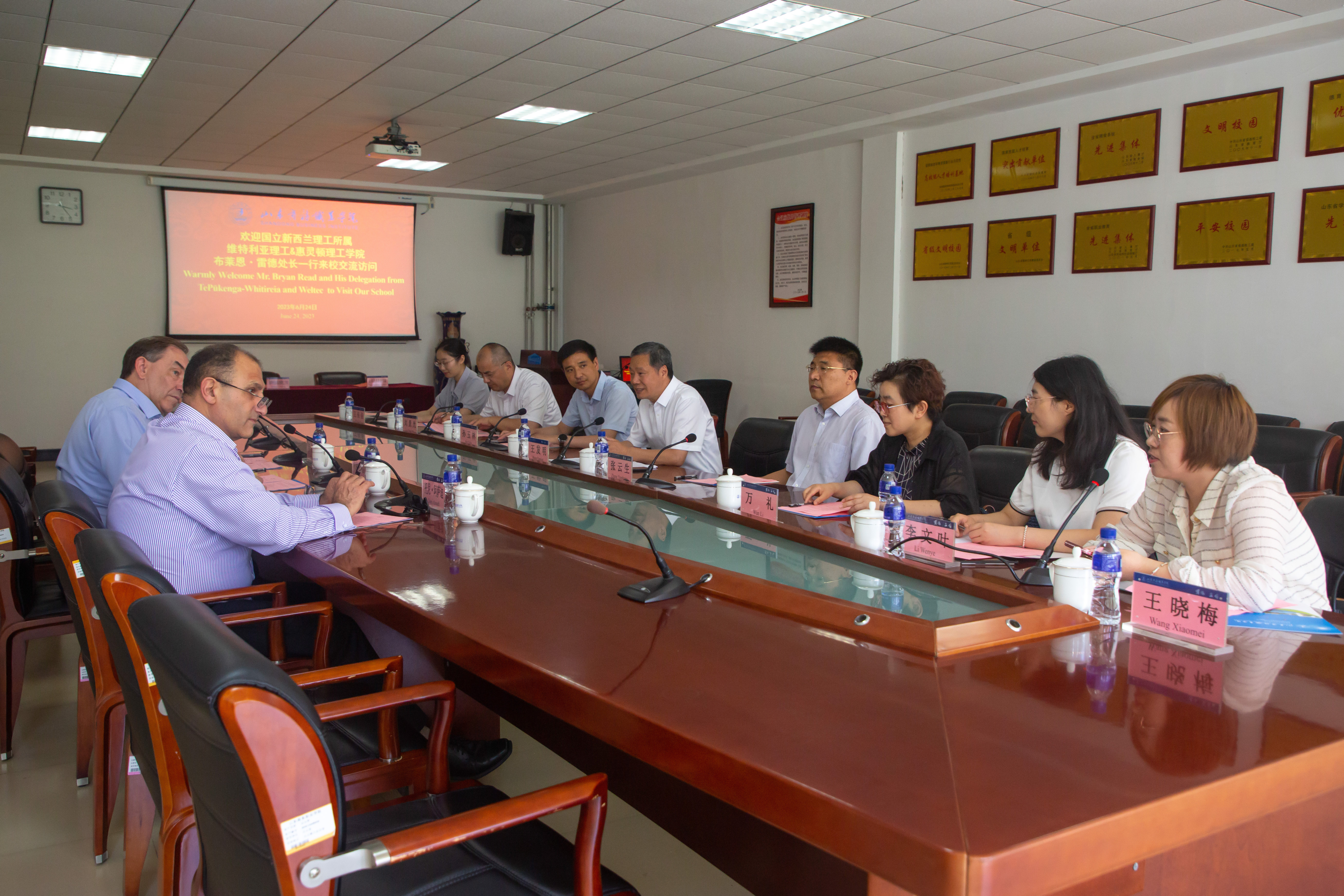 王发明首先对布莱恩·雷德处长一行的来访表示热烈欢迎,并从学校基础设施、专业建设、人才培养、国际交流与合作等方面介绍了我校的情况。他指出,中新两国有着长期的友好交往历史,两国在高等教育领域也有着广泛和丰富的交流合作。此次新方到访,希望双方在前期已有的合作共识和项目经验基础上,进一步增进互信和了解,为双方深入合作奠定坚实基础,共同促进两校国际化发展,使两校成为中新友好交流的使者。布莱恩·雷德处长感谢我校热情周到的接待,简要介绍了维特利亚理工&惠灵顿理工学院的办学历史、专业设置、办学理念等情况,他期待双方在拓展国际化合作方面取得成果。随后,代表团成员详细介绍了有关专业的办学情况和学生培养模式,双方与会人员就两校中外合作办学、教师互访、学生交流等方面展开深入洽谈,达成初步合作意向。会上,双方举行了签约仪式并合影留念。会后,在校领导和相关人员的陪同下,来宾一行参观了校园。