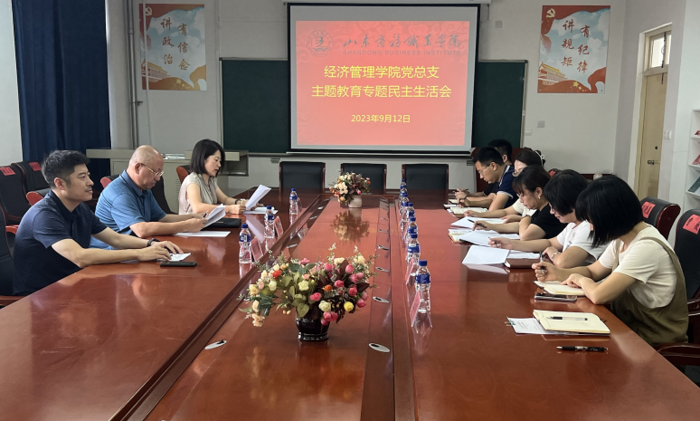 本站讯 9月12日上午,经济管理学院党总支在3A311召开学习贯彻习近平新时代中国特色社会主义思想主题教育专题民主生活会。学校副校长陶传蔚到会指导,经济管理学院党总支班子成员参加会议,副科级以上干部、各党支部委员、专职组织员列席会议。会议由党总支书记范彩荣主持。