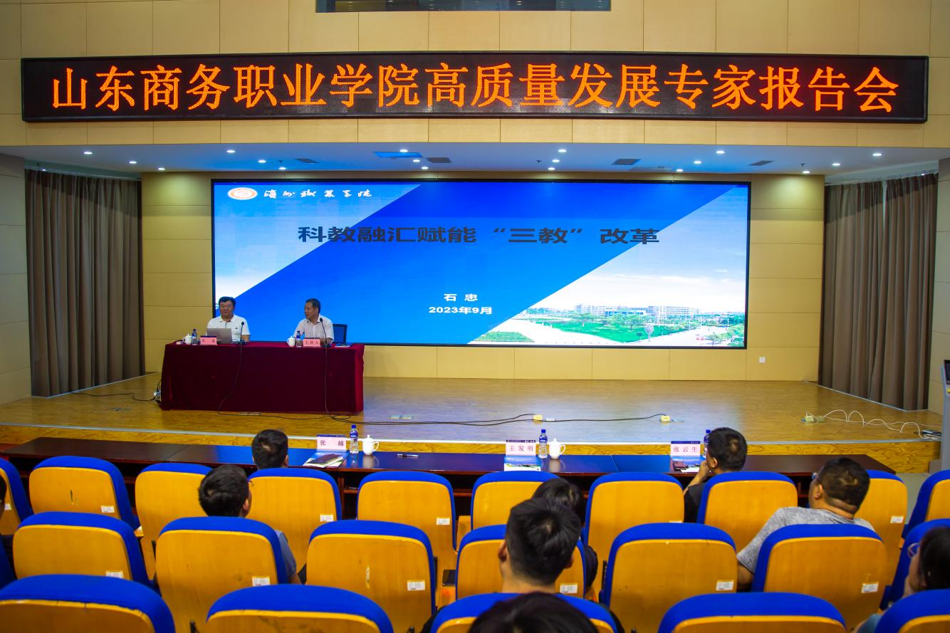 本站讯 为增强职业教育适应性,深化现代职业教育体系改革,持续提升学校关键办学能力,近日,学校邀请山东省职业技术教育学会会长石忠教授在学校党性教育基地作高质量发展专题报告。学校领导,副科级以上干部,各专业带头人、公共课负责人,全体辅导员参加了会议。报告会由党委副书记、校长王发明主持。
