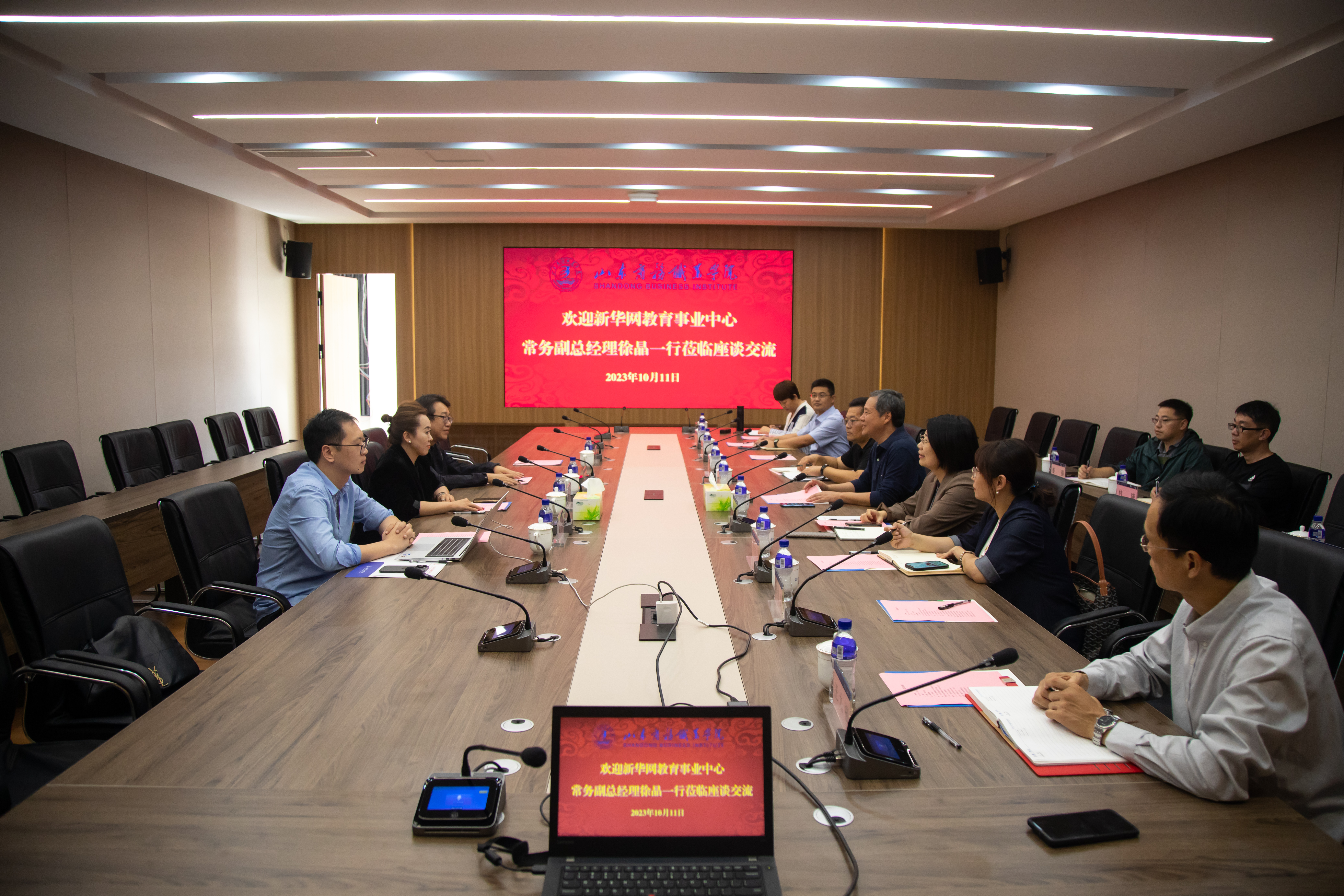 本站讯 10月11日下午,新华网教育事业中心常务副总经理徐晶、运营总监赵峰、教学服务中心柯金涛一行3人到校座谈交流,交流会以“课程育人、思政铸魂”为主题,会议由我校党委副书记、校长王发明主持。教务处、教师发展中心、马克思主义学院、各二级学院负责同志参加会议。