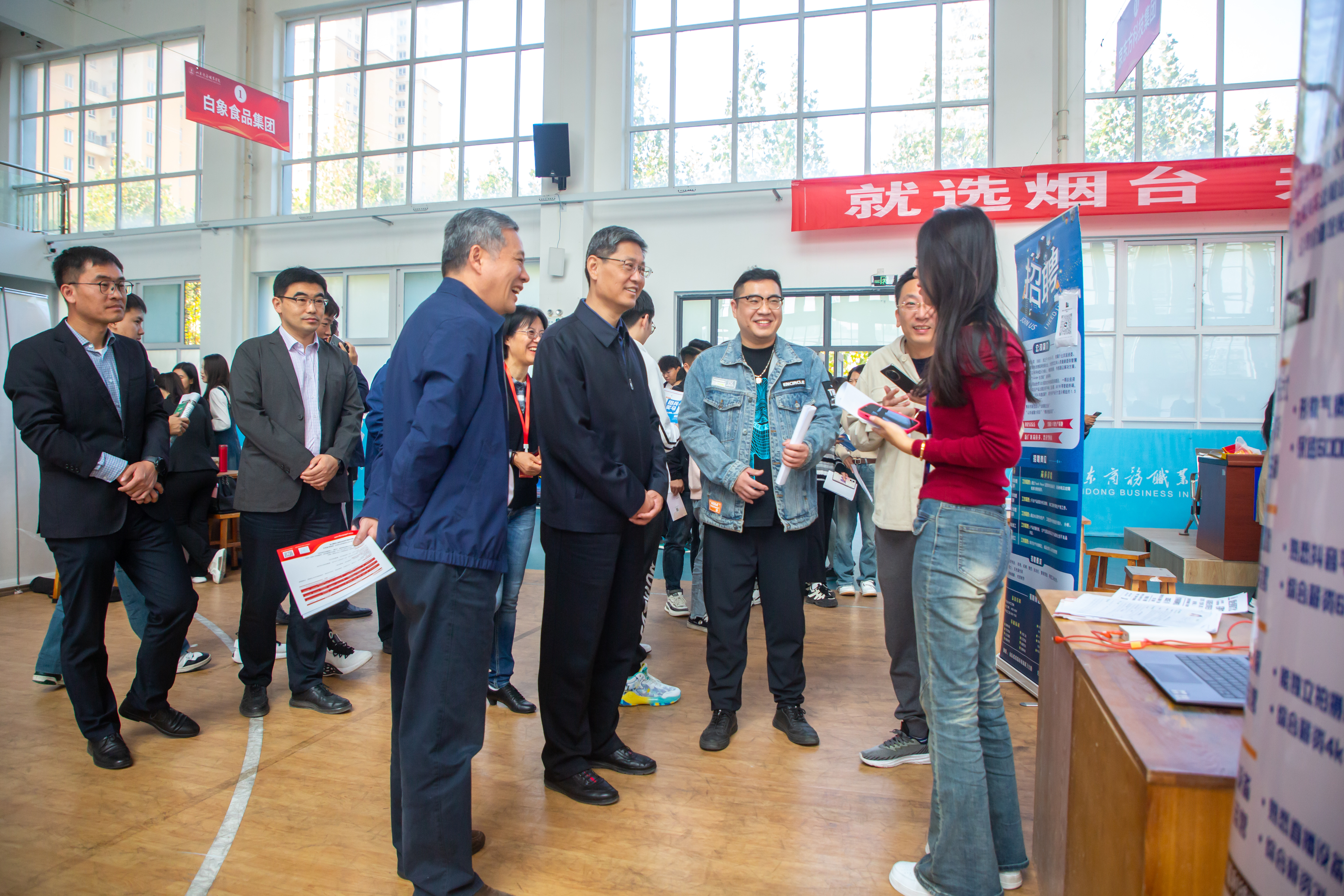 本站讯 为切实推动毕业生高质量就业、充分就业,根据山东省人社厅、烟台市人社局对就业工作的相关部署,10月28日,2023年“校地结对,校企共赢”专场秋季双选会在我校体育馆举办。学校党委书记孙云茂,党委副书记、校长王发明莅临现场指导。