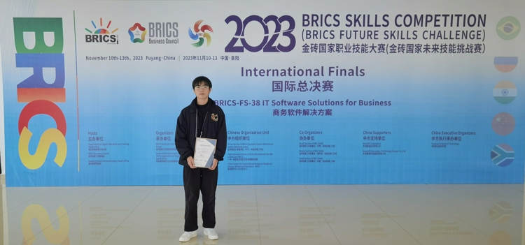本站讯 11月10日至13日,由南非高等教育与培训部、金砖国家工商理事会、南非豪登省政府主办,教育部中外人文交流中心组织的2023年金砖国家职业技能大赛商务软件解决方案国际总决赛在安徽阜阳举办。我校信息工程学院2022级软件专业蔡克诚同学经过两天激烈角逐,斩获国际总决赛三等奖的好成绩。