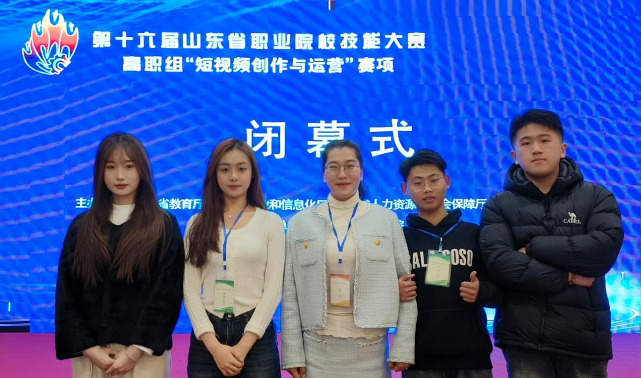 本站讯 12月9日—11日,由山东省教育厅主办,山东传媒职业学院承办的第十六届山东省职业院校技能大赛(高职组)“短视频创作与运营”赛项开赛。作为首次举办省赛的新设赛项,我校经济管理学院张霞、宗林鹏两位老师指导的电子商务和市场营销专业学生王美婷、宋宜轩、房旭、公为征组成的参赛团队,经过激烈角逐,斩获省赛二等奖。