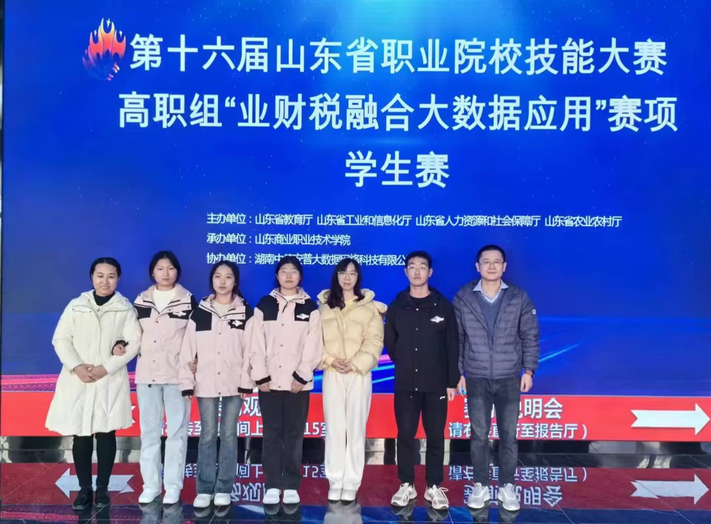 本站讯 近日,第十六届山东省职业院校技能大赛高职组“业财税融合大数据应用”赛项(学生赛)在山东商业职业技术学院举办,来自全省的43所院校同台竞技。我校会计金融学院刘栋鑫、吴楠两位老师指导的大数据与会计专业学生徐欣欣、孙硕、柳昕呈、王孜铭组成的参赛团队,经过一天半的激烈角逐和比拼,荣获二等奖。