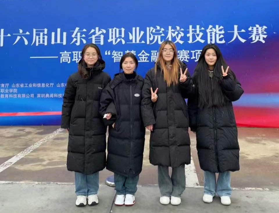 本站讯 12月14日—15日,2023年山东省职业院校技能大赛(高职组)“智慧金融”赛项在潍坊落下帷幕, 我校会计金融学院姚倩倩、王潇、杜永静、韩文鑫4名学生组成的代表队在全省36支参赛队伍中脱颖而出,蝉联一等奖第一名。