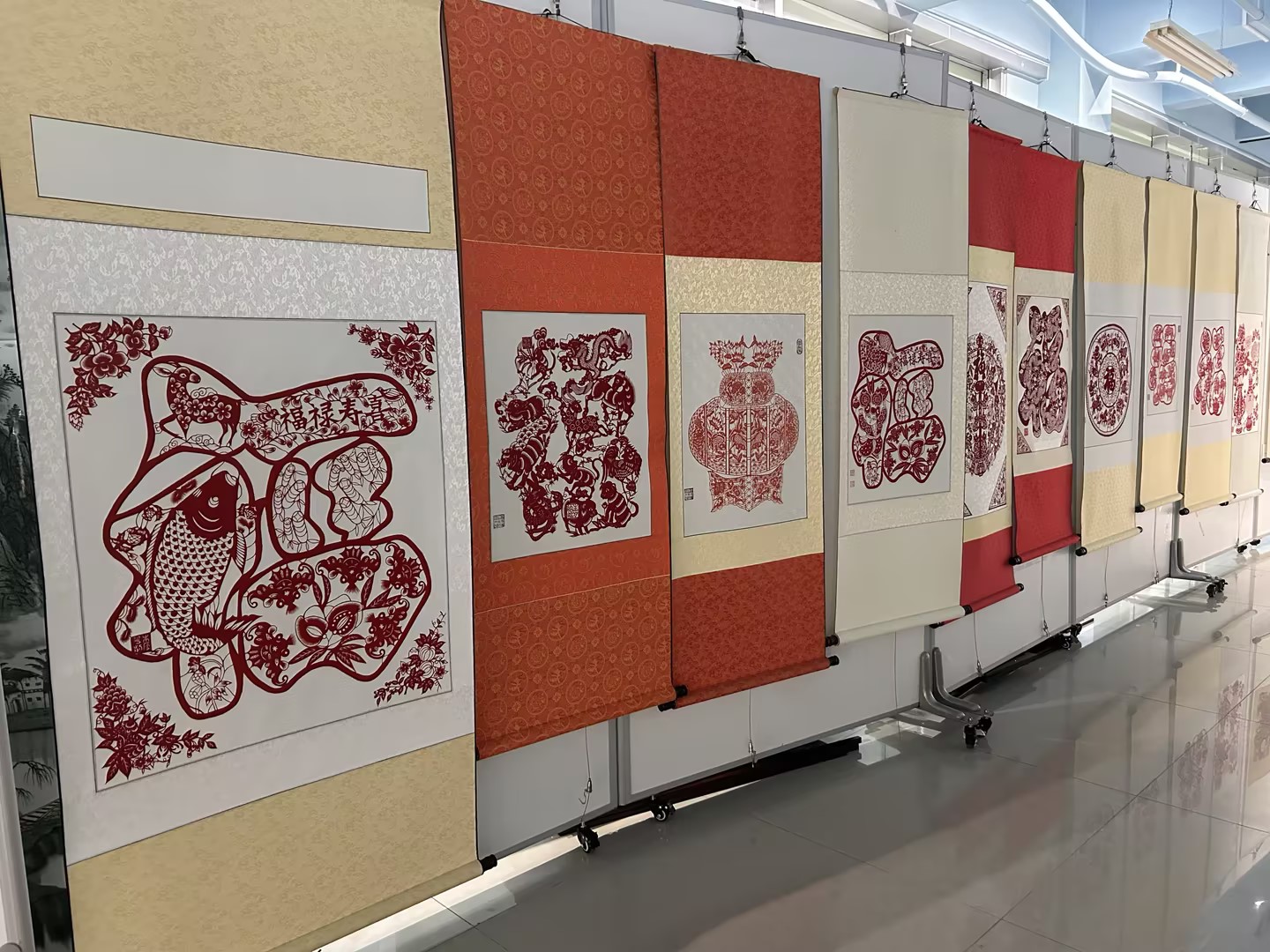 烟台剪纸是中国剪纸最具代表性的民间艺术之一,剪纸样式品类丰富,在整体风格上,以其画面结构紧凑,线条挺拔流畅的特点,成为中国民间剪纸三大流派之一。烟台剪纸于2008年入选国家级非物质文化遗产名录。山东省非物质文化遗产传承人朱曼华,秉承烟台民间剪纸艺术的精髓,并吸收借鉴其他剪纸流派的特长,进行探索创新,最终形成了自己浑厚、精细、清雅、明快的独特风格。活动现场展出《百子福》《福禄寿喜》《山东名胜》等20余幅剪纸作品,师生们零距离感受着这项指尖上跳跃的艺术。