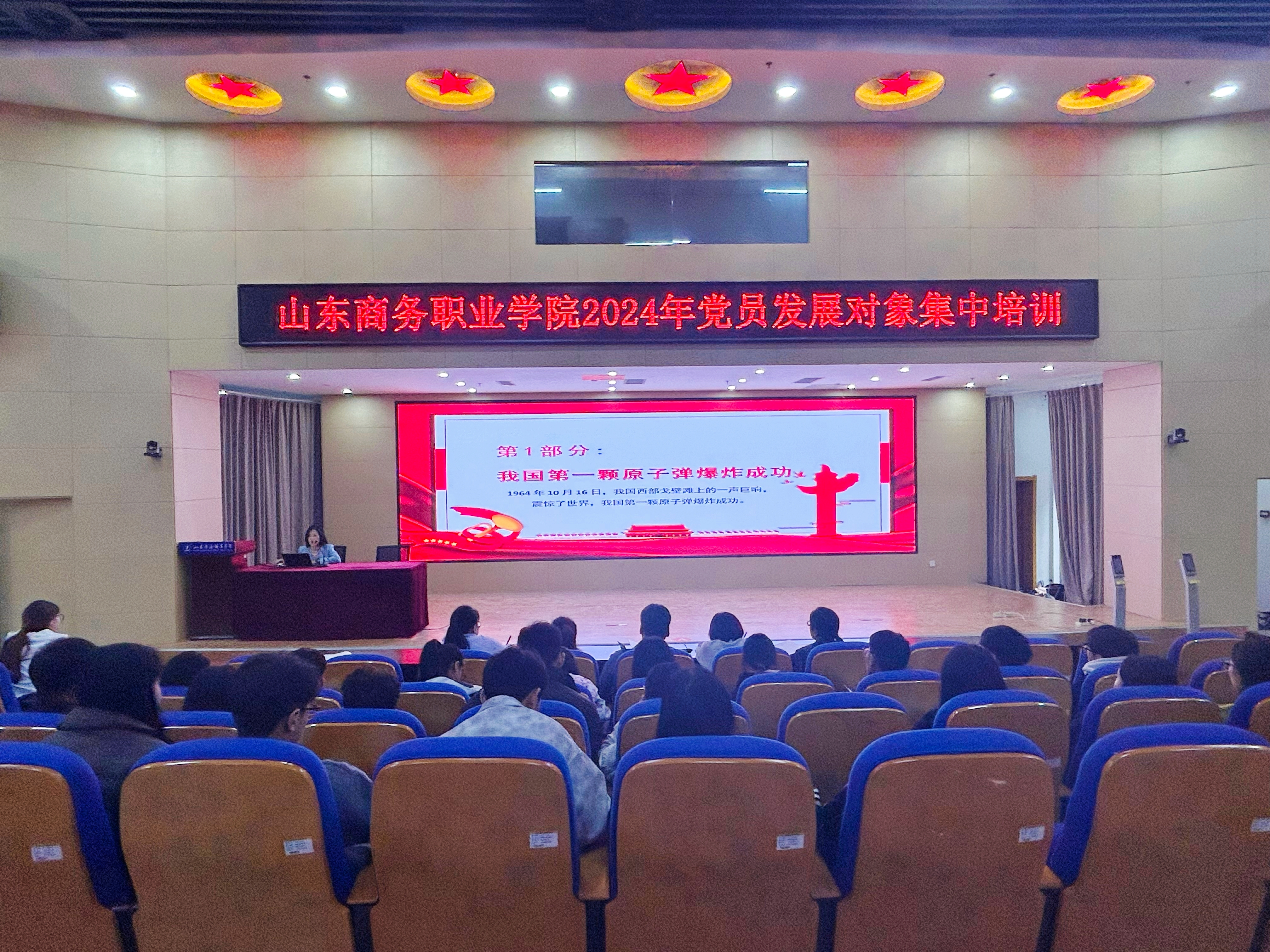专题党课,深化思想认识。会计金融学院党总支书记赵安仁以“党性修养是共产党人的终身课题”为题,激励学员端正入党动机,不断加强理论修养、政治修养、道德修养、作风修养和能力修养。经济管理学院党总支书记范彩荣以纪念我国第一颗原子弹爆炸成功60周年为切入点,讲授“立志做新时代好青年”主题党课,教育引导学员牢固树立远大理想,坚定理想信念,主动肩负起时代赋予的光荣使命。