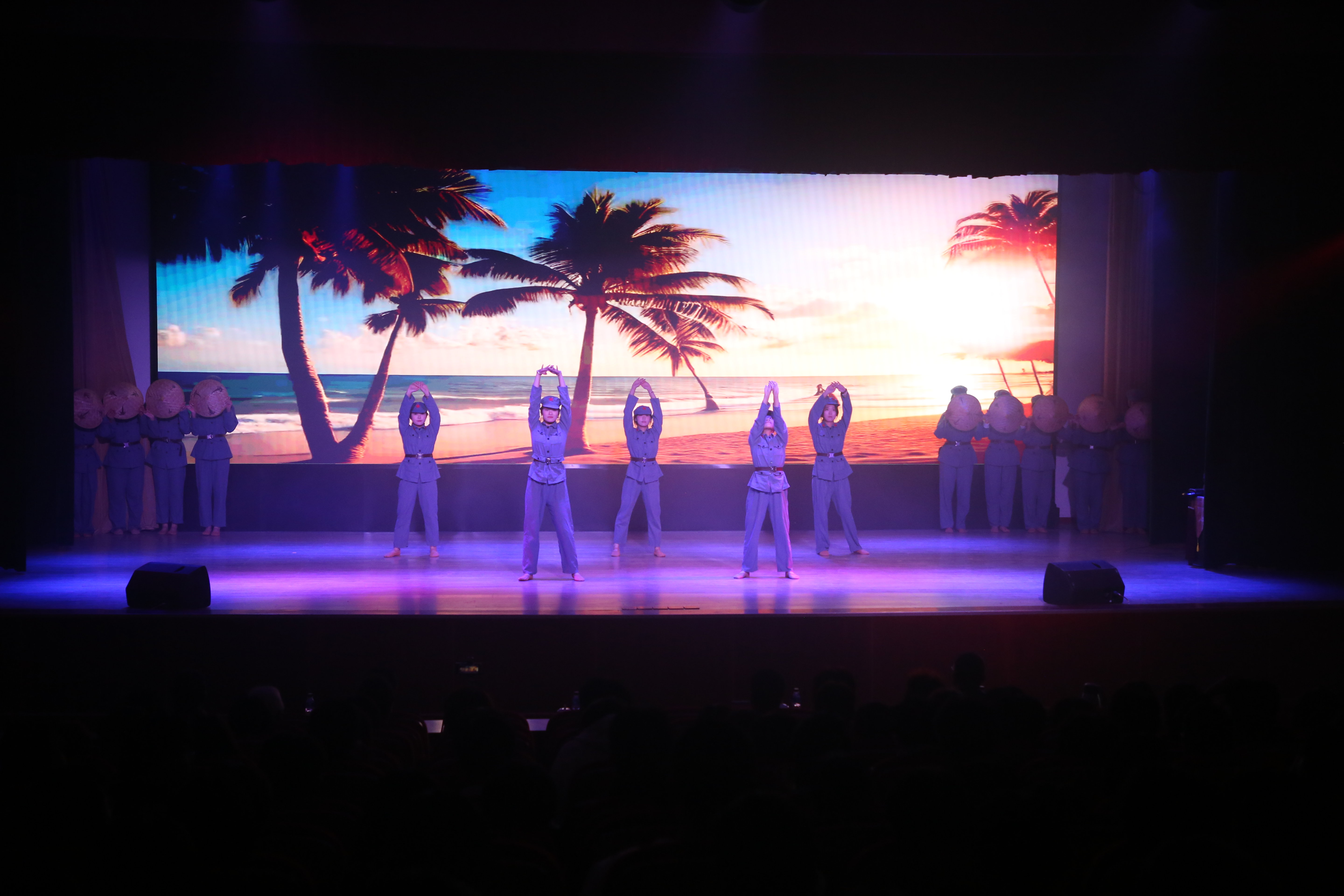 演出在学校大学生艺术团舞蹈《万泉河水》中拉开帷幕,紧凑欢快的节奏和优美的舞姿瞬间点燃了现场氛围。《春江花月夜》《面朝大海春暖花开》《宽阔心胸》等经典作品让大家沉浸在文化的海洋中,感受着朗诵带来的心灵震撼和情感共鸣。《烟台的海》《诗意中国》等美文为大家展开了一幅幅波澜壮阔的祖国画卷,将诗歌的韵律和意境完美融合。随后,一首《如愿》将活动的氛围带入高潮,台下掌声不断,由校园广播电台同学们共同演绎的《朗诵的力量》诠释了诗歌的魅力和力量,最后全体演员和颂《读中国》,为本次演出活动画上了圆满的句号。