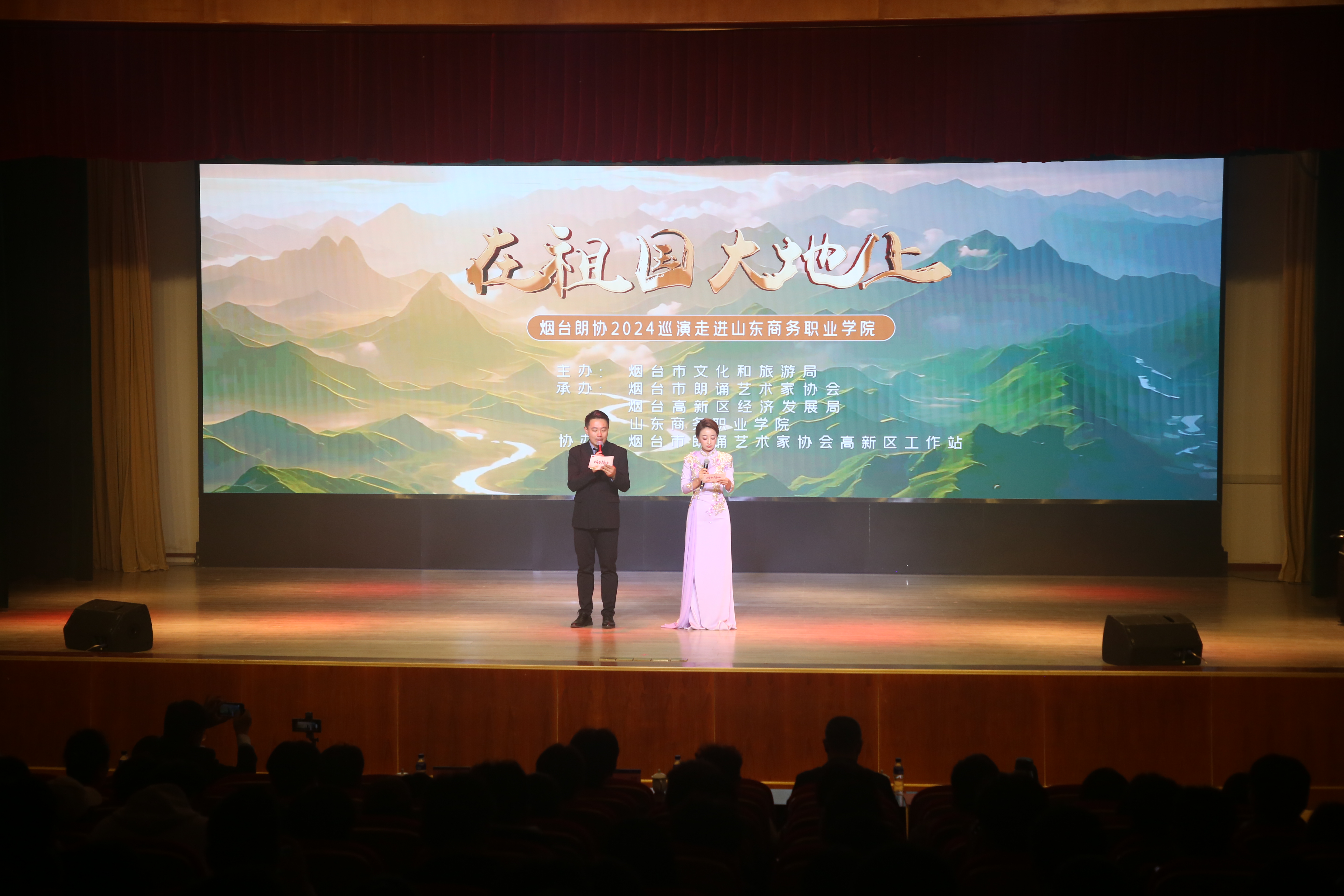 本站讯 为深入学习贯彻党的二十大和党的二十届三中全会精神,落实《教育部关于全面实施学校美育浸润行动的通知》要求,引领当代大学生弘扬优秀民族文化,提高艺术素养。10月25日,由烟台市文化和旅游局主办,烟台高新区经济发展局、烟台市朗诵艺术家协会及我校承办的“高雅艺术进校园—在祖国大地上”活动在学校音乐厅举行。烟台市朗诵艺术家协会主席景然、高新区经济发展局三级专员李庆东、学校党委副书记张越出席活动,600余名师生共同观看演出。