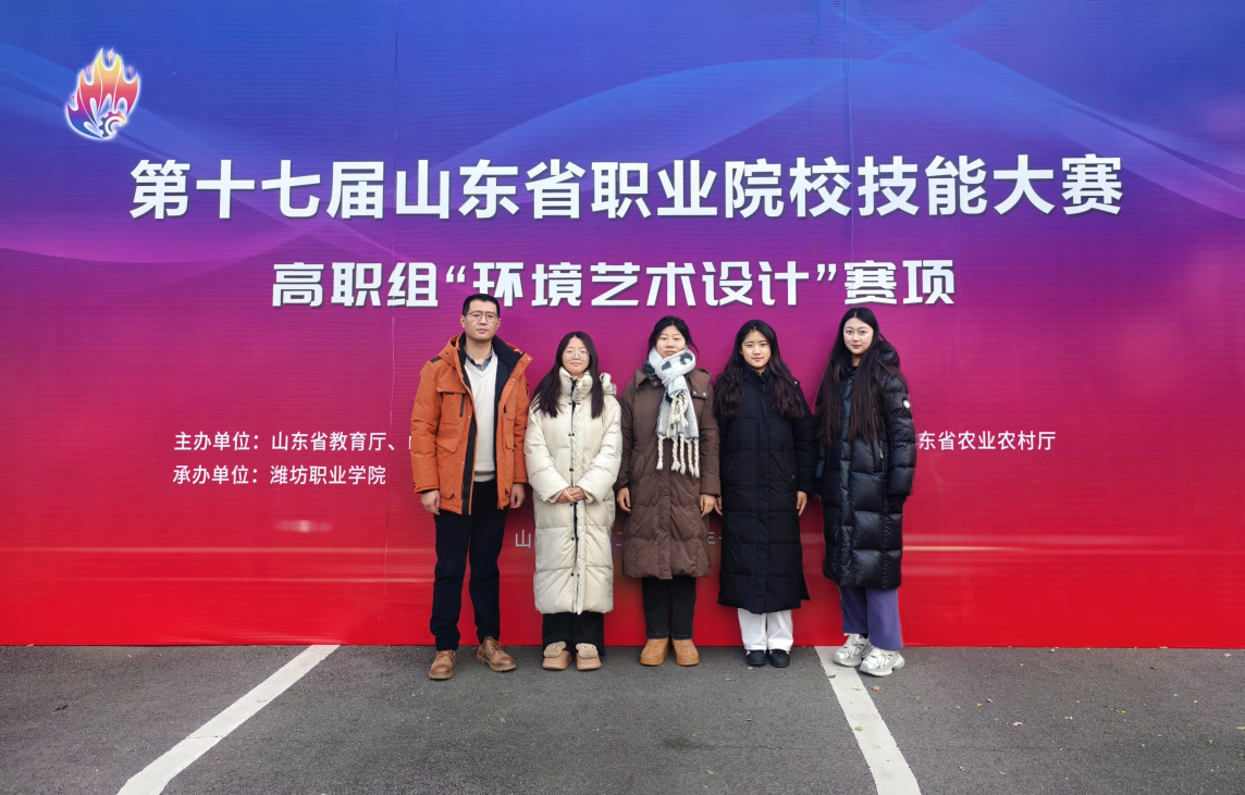 本站讯 12月18日,第十七届山东省职业院校技能大赛高职组“环境艺术设计”赛项在潍坊职业技术学院落下帷幕。本次大赛由山东省教育厅、山东省工业和信息化厅、山东省人力资源和社会保障厅以及山东省农业农村厅联合主办。经过激烈角逐,我校艺术设计学院环境艺术设计专业的乔佳慧、尹佳妮同学,在指导教师于洋、孙杨静的悉心指导下,从全省49支参赛队伍中脱颖而出,荣获二等奖。