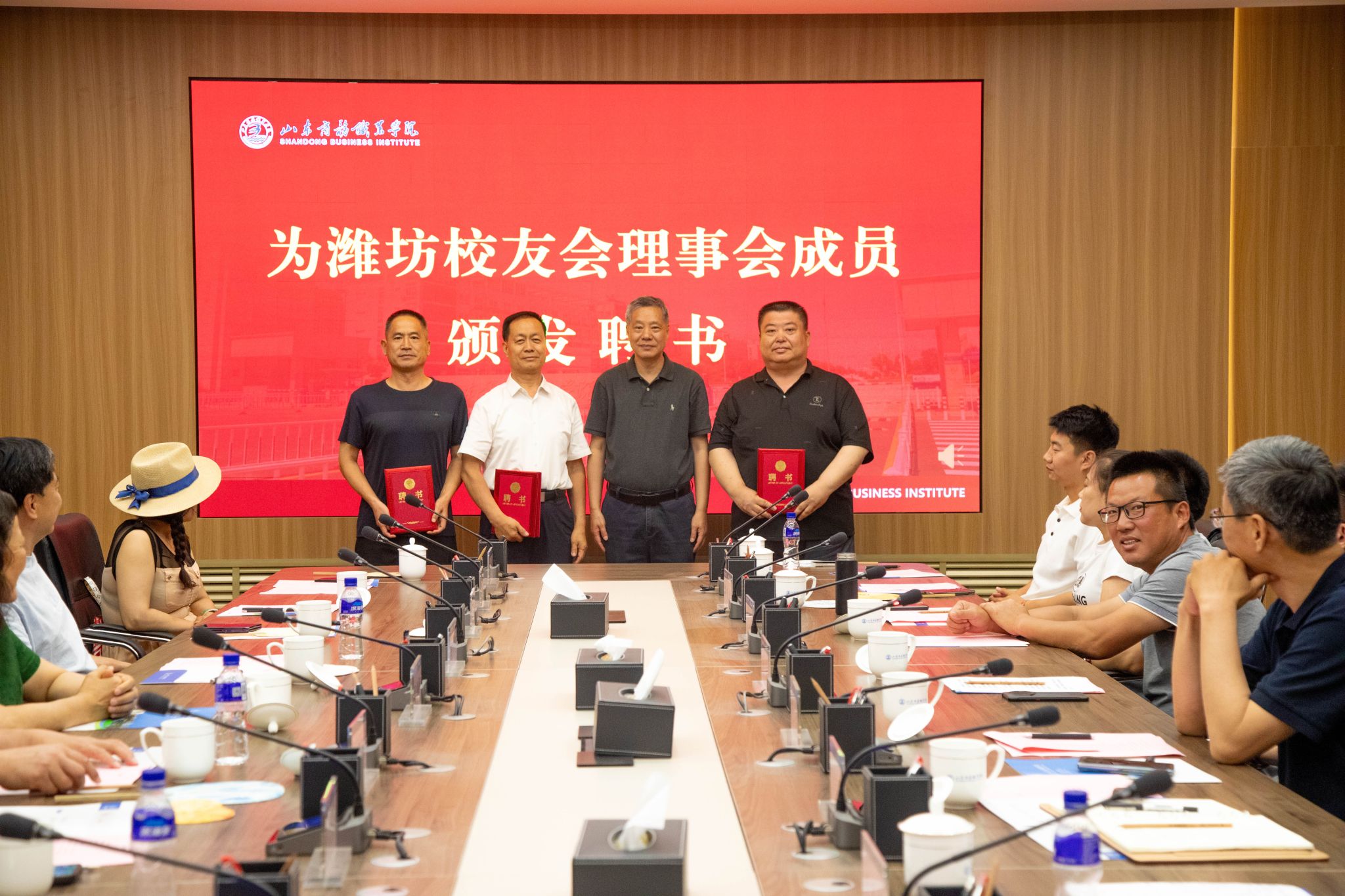 会上,应潍坊校友会申请并经学校研究,同意了潍坊校友会会长、秘书长等人员聘任的申请,王发明对潍坊校友会新任会长、秘书长颁发了聘书。