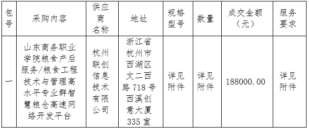 一、采购项目名称:山东商务职业学院粮食产后服务/粮食工程技术与管理高水平专业群智慧粮仓高速网络开发平台、物联网开发平台采购(第一包)