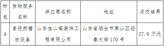 八、采购小组成员评审结果:标包A:山东佳山阁装饰工程有限公司(86.36、87.36、91.36)、烟台永盛建筑开发有限公司(70.92、79.42、83.92)、烟台广泰建筑工程有限公司(64.67、74.67、75.67)