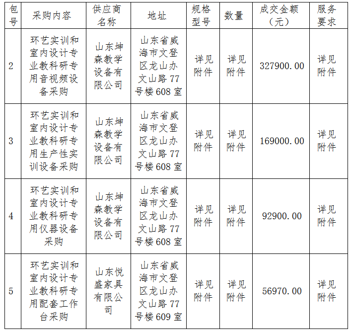 标包二:山东坤森教学设备有限公司(89.0、89.0、92.0)、威海众日贸易有限公司(79.92、79.92、82.92)、威海金元素教育装备有限公司(79.96、82.96、85.96)。