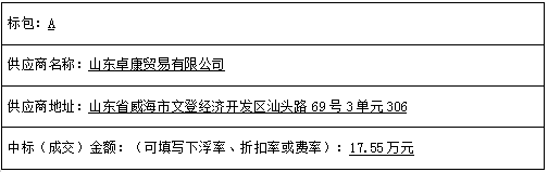 标包A:山东卓康贸易有限公司(89.5、92.0、93.0)、山东坤森教学设备有限公司(84.64、87.64、87.64)、威海金元素教育装备有限公司(78.41、80.41、83.41)