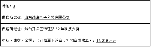 标包A:山东诚海电子科技有限公司(92.68、95.18、98.18)、烟台海风网络工程有限公司(77.97、81.97、88.97)、山东优谱信息科技有限公司(75.98、79.98、89.98)