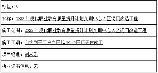 二、项目名称:2022年现代职业教育质量提升计划实训中心A区钢门改造工程
