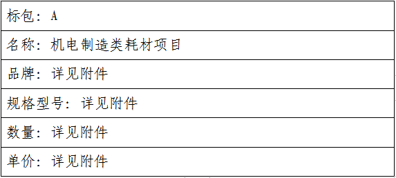 二、项目名称:机电制造类耗材项目