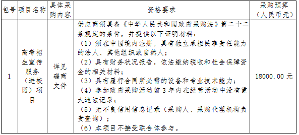 一、采购项目名称:高考招生宣传服务(进校园)项目