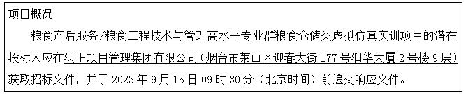 2.项目名称:粮食产后服务/粮食工程技术与管理高水平专业群粮食仓储类虚拟仿真实训项目