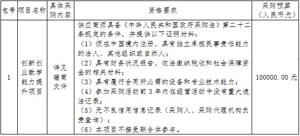 四、采购项目分包情况:山东商务职业学院创新创业教学能力提升项目;本项目划分为1个包。