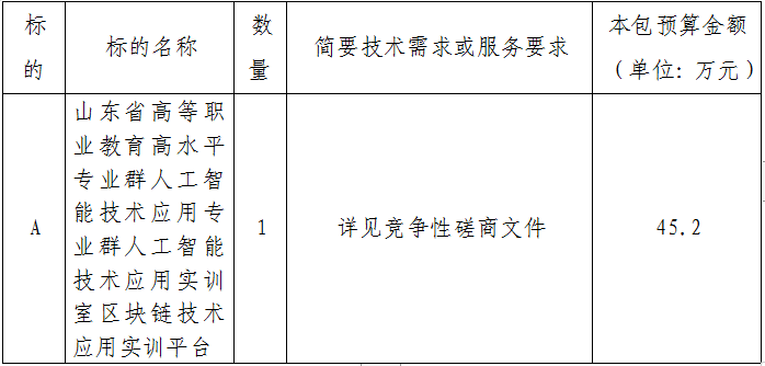 2.项目名称:山东省高等职业教育高水平专业群人工智能技术应用专业群人工智能技术应用实训室区块链技术应用实训平台