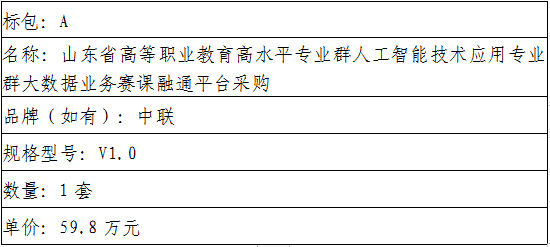 二、项目名称:山东省高等职业教育高水平专业群人工智能技术应用专业群大数据业务赛课融通平台采购