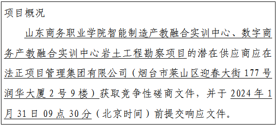 项目名称:山东商务职业学院智能制造产教融合实训中心、数字商务产教融合实训中心岩土工程勘察项目