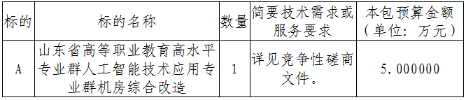 项目名称:山东省高等职业教育高水平专业群人工智能技术应用专业群机房综合改造