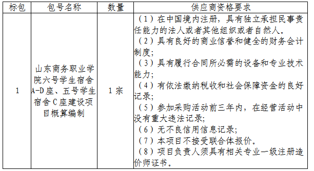 二、采购项目名称:山东商务职业学院山东商务职业学院六号学生宿舍A-D座、五号学生宿舍C座建设项目概算编制