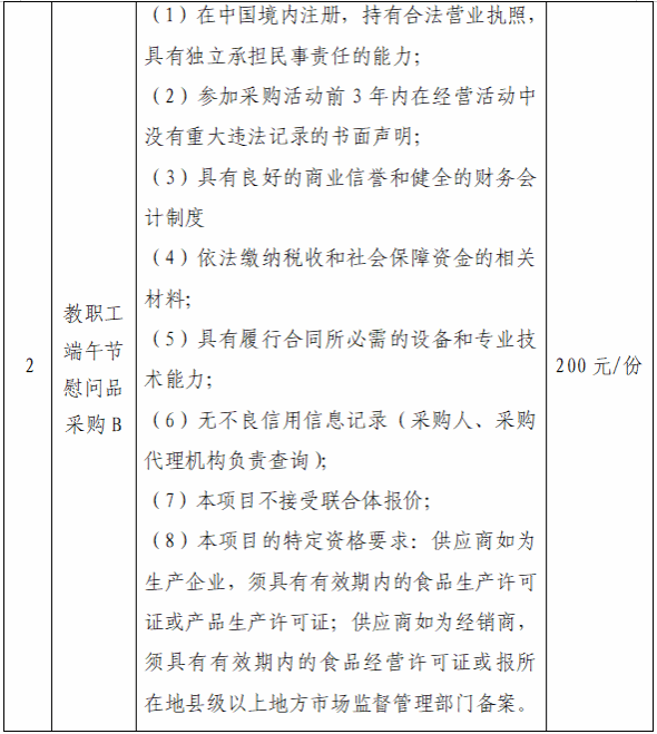 一、采购项目名称:教职工端午节慰问品