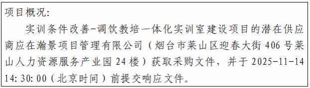 项目名称:实训条件改善-调饮教培一体化实训室建设项目
