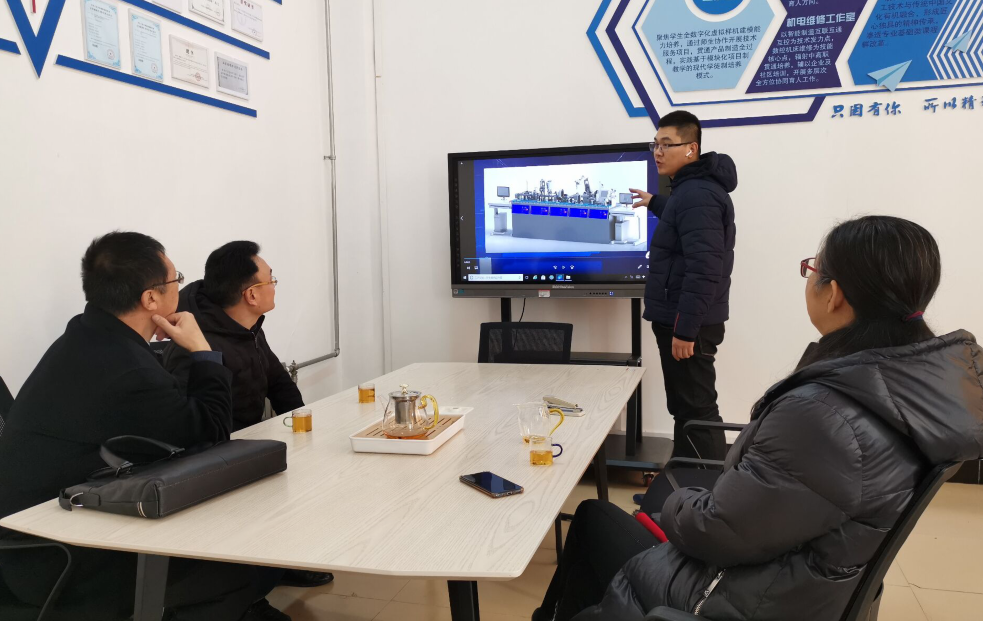 烟台大学两位教授全方位的考察了智能制造学院实训楼,认真聆听各工作室负责人的细致介绍,对学院学生实践制作的精美艺术品给予充分肯定,对学院教师深耕技术应用、求真务实的研究态度给予高度评价,对工作室以校企合作为载体,积极将技术技能推广应用的教学理念深表认可。