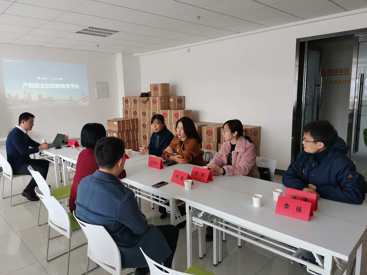 本站讯 2月23日,我校校企合作与就业工作处处长范彩荣及会计金融学院副院长付晓带队走访神州顺利办驻烟台办事处,就双方共建产业学院事宜进行商洽。