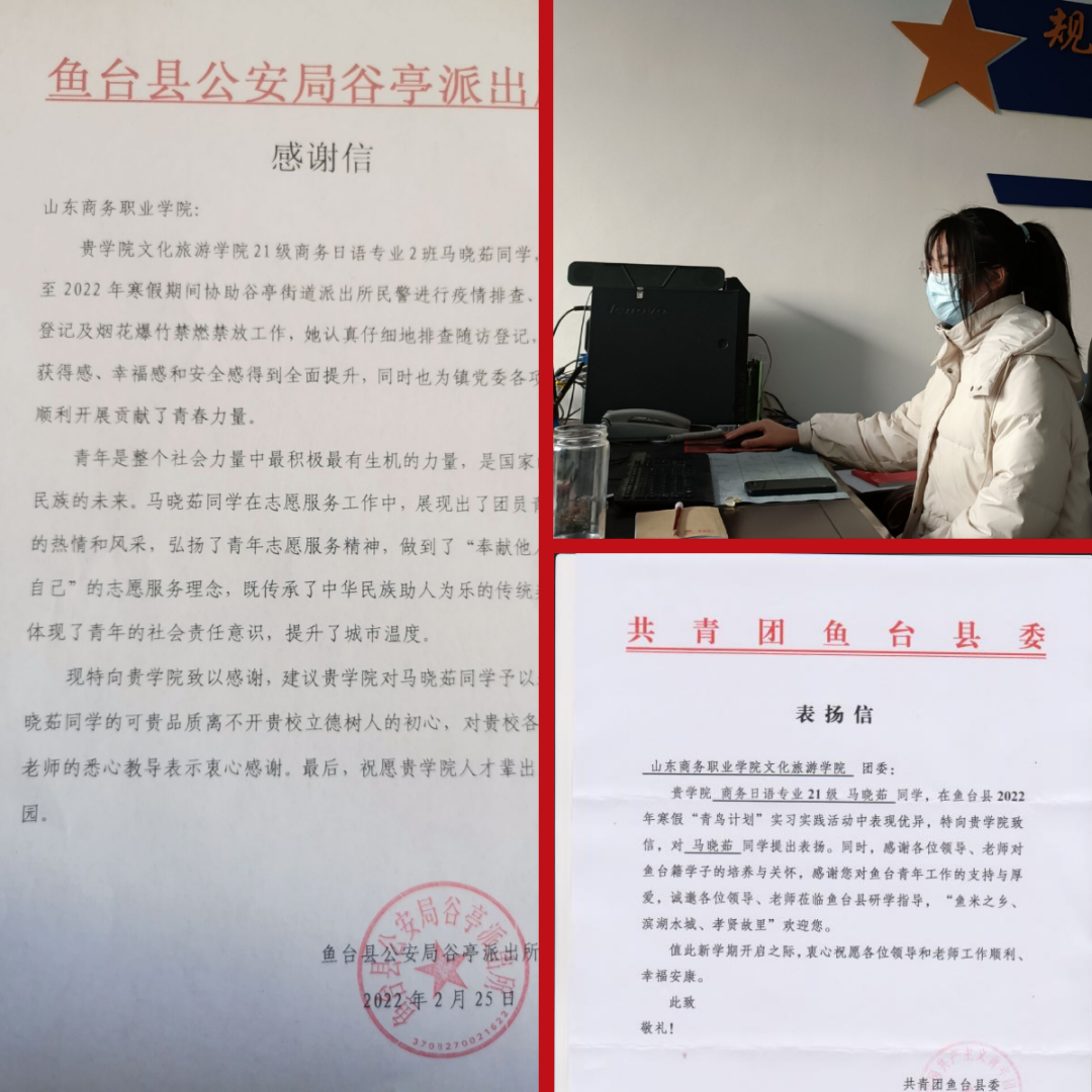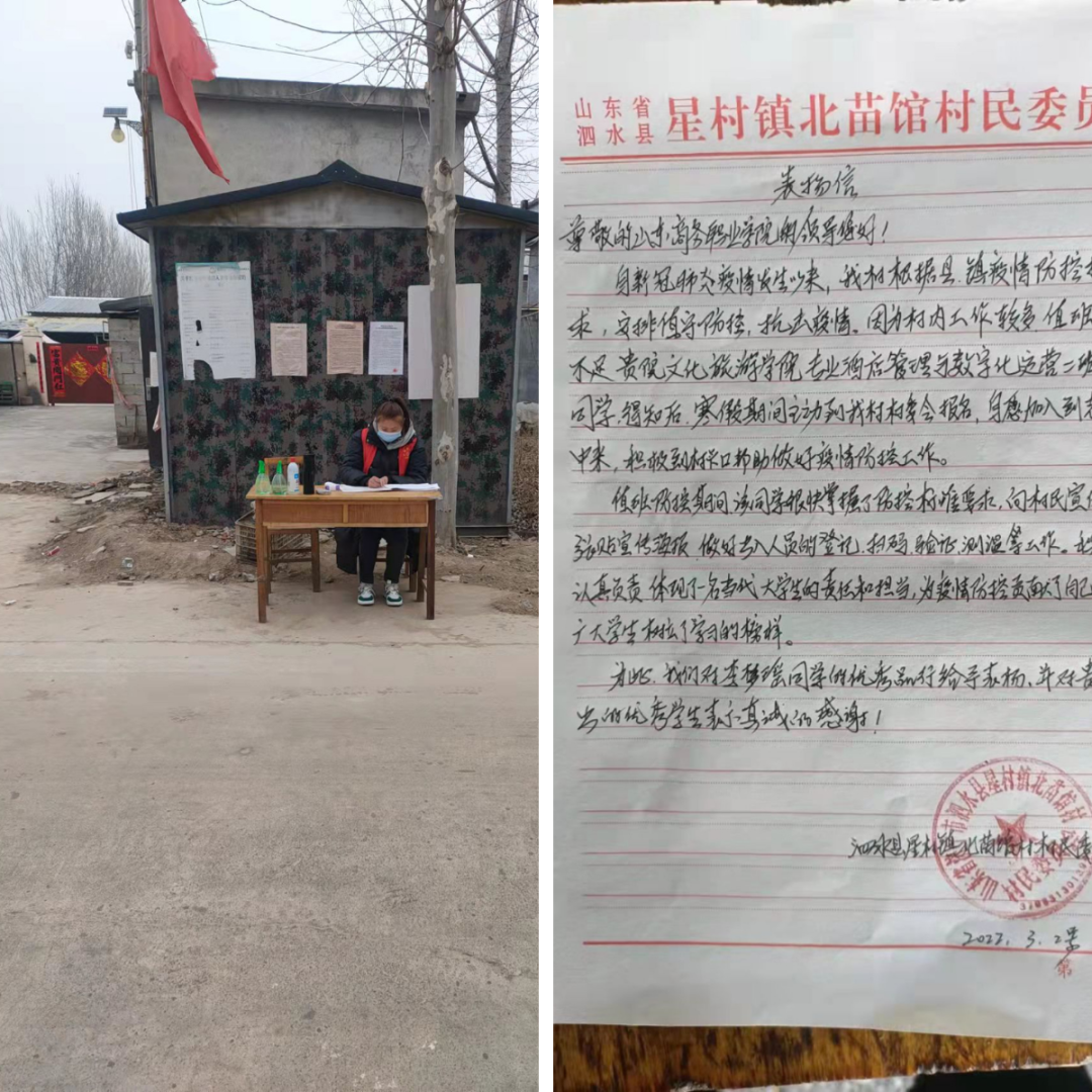 本站讯 “感谢贵学院的同学参加疫情防控工作,在志愿服务中展现出了团员青年的热情和风采,弘扬了青年志愿服务精神。”“学子的无私奉献精神,离不开贵校的悉心培养,在此表示衷心的感谢并致以崇高的敬意!”新学期伊始,文化旅游学院陆续收到了多封表扬信,信中对奋战在抗疫前线的志愿者同学进行了表扬,对他们主动投身抗疫一线的奉献精神和认真负责的工作态度给予了高度肯定,同时对学院的人才培养工作表示感谢。