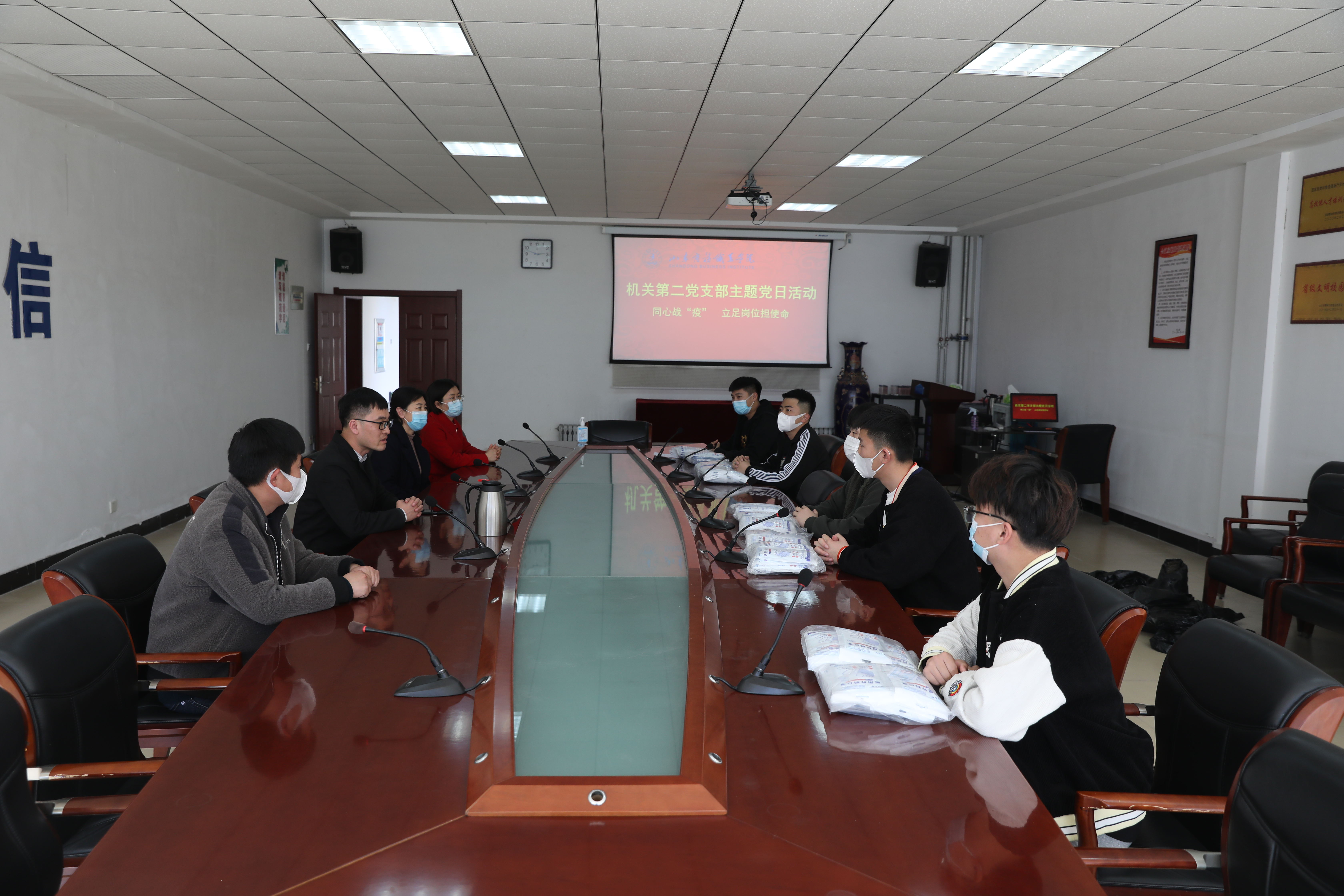 机关第二党支部通过座谈会了解到学生急需解决的问题是购买口罩,支委会成员当即召开会议决定发动支部成员捐款为学生购买口罩,以解燃眉之急。3月28日机关第二党支部全体党员共捐款550元,购买了146包口罩全部发放给所联系班级的学生。