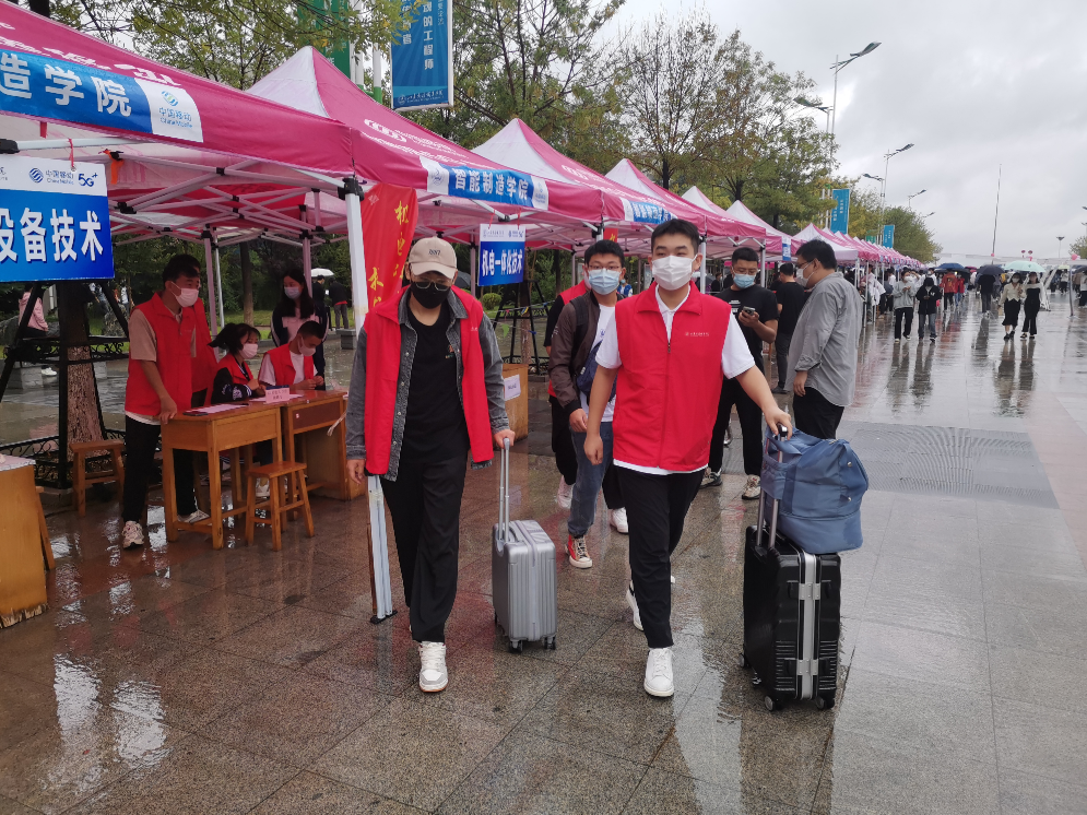 周到服务,热心。学院85名身着红马甲的志愿者,忙碌在校园各个角落,从学校东门进校核验处到中心大道学院报到处,从新生领取行李物品到新生宿舍,从教室到餐厅,都能看到那一抹鲜艳的“红”耐心地为新生们搬运行李,答疑解惑,带领他们完成报到手续,尽快了解和适应学校环境。