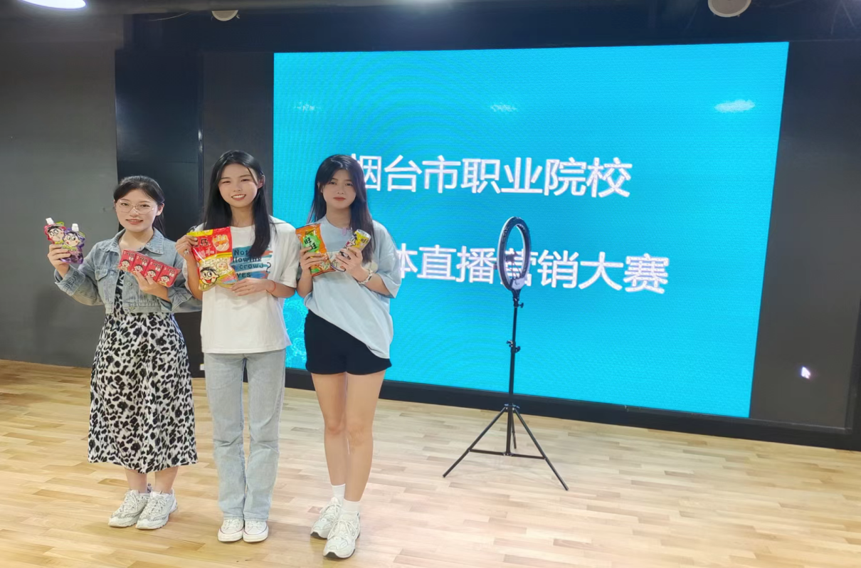 本站讯 近日,在山东省技艺技能传承创新平台——胶东特色农副产品全媒体营销创新平台的支持和帮助下,我校经济管理学院21级市场营销专业学生参加了由烟台市职业教育学会和中国(山东)自贸区烟台跨境电商产教联盟共同举办的烟台市职业院校新媒体直播营销大赛,过了一把主播瘾,实现了一直以来的主播梦。